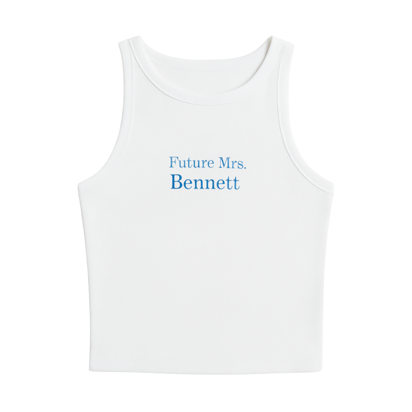 Say yes to your bridal era with our Future Mrs. tank — a white high-neck ribbed essential embroidered with your future last name in delicate stitching. Perfect for bachelorette weekends, bridal brunches, or just manifesting your big day energy, this tank is both flirty and timeless. Designed to fit like a dream and feel like forever. 💍