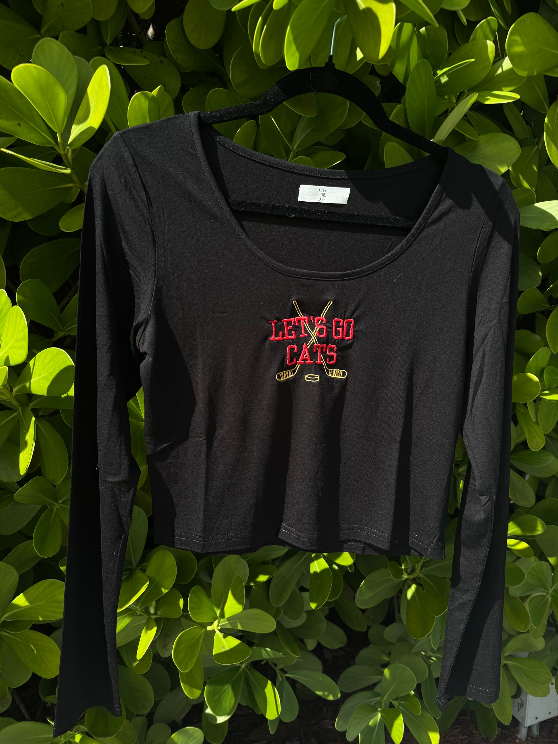 The Rinkside Crop is made for game day girls—the ones who show up loud, loyal, and ready to cheer. Featuring our signature cropped fit and bold “Let’s Go Cats” detailing with crossed sticks, it’s the perfect blend of sporty + cute. Wear it rinkside, bar-side, or couch-side… either way, you’re bringing the energy.